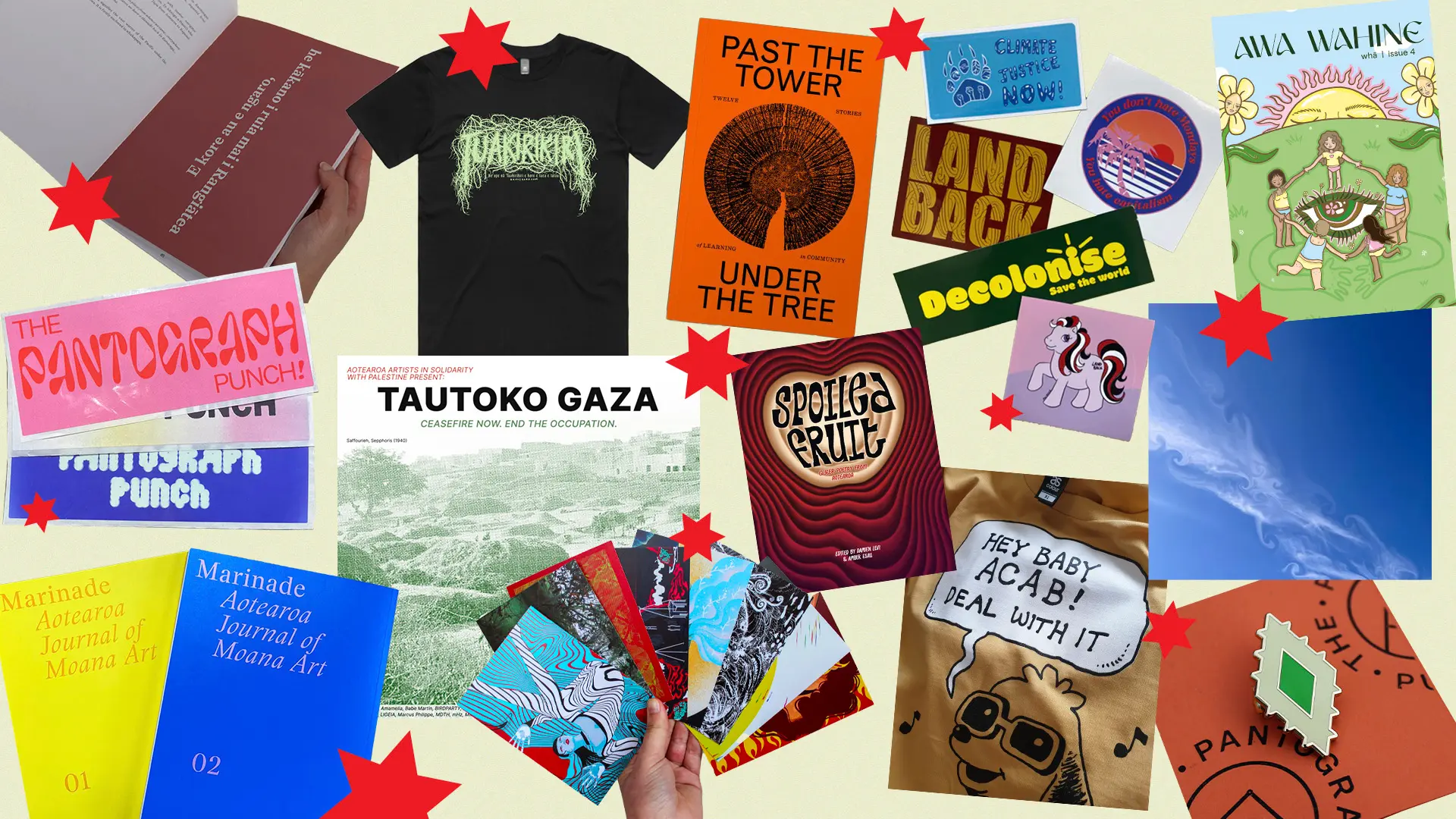 These stickers are arguably the coolest designs on the block to demonstrate your transformational politics, and Action Station are one of the most important campaigning platforms around in Aotearoa doing huge movement-building mahi. These stickers are sold at Moana Fresh!