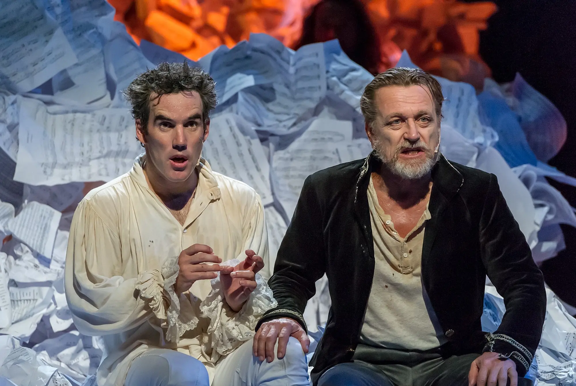 Auckland Theatre Company’s production of Amadeus is a defibrillation that this play desperately needs. This is clear from the moment the curtain comes up and we’re greeted with thousands of crumpled up pieces of paper – a shrine to the tortured artist. Set designer Ella Mizrahi did beautiful work with her own company Celery Productions, including transporting us into a real life forest in Blackbird Ensemble’s Into The Wilderness and transforming the Basement Theatre space into a dive bar with Silo Theatre's Blind Date Project and this is her most stunning work yet. It takes us into the mind of Salieri who’s driven almost mad with his jealousy of Mozart and his rage at an absent God, and this tumult literally takes up the entire stage. The paper stage is a hell of an image, and it’s one the production plumbs throughout, with bits of paper flying about the stage through actor movement, an air-drop from above, and even, at one point, via a large fan.