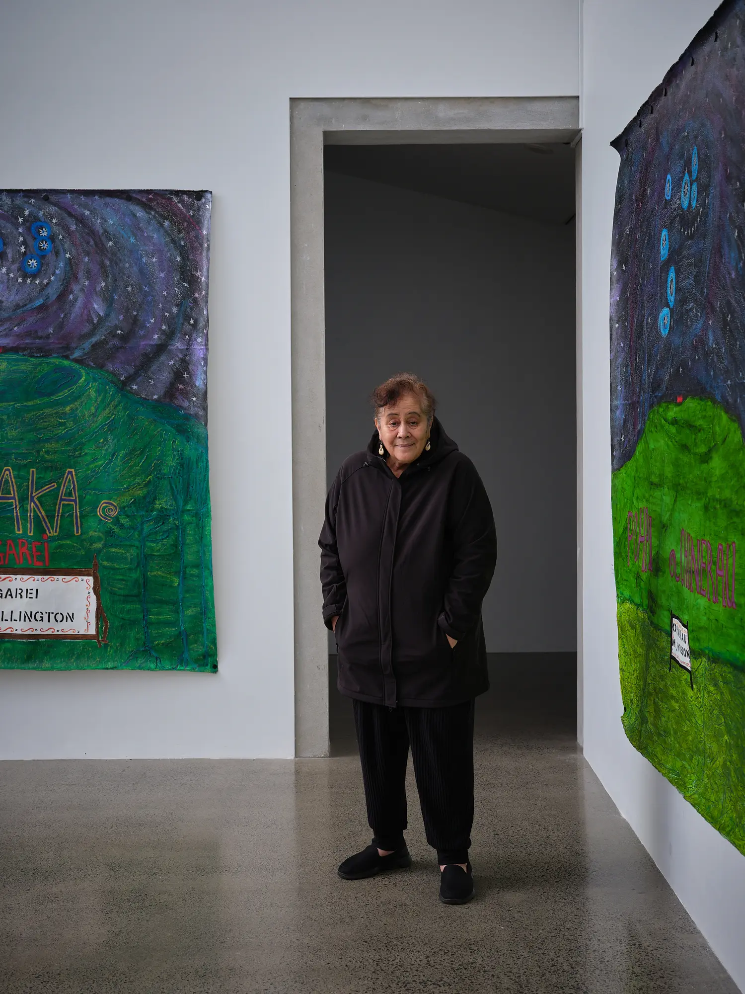 Emily Karaka is of Waikato and Ngāpuhi (Ngāti Hine, Ngāti Kahu o Torongare, Ngāi Tai ki Tāmaki, Te Kawerau ā Maki, Ngāti Tamaoho, Te Ākitai Waiohua, Ngāti Rori-Te Ahiwaru, Ngāti Mahuta and Ngāti Tahinga) descent. She has lived in Tāmaki Makaurau all her life. And her body of work Matariki Ring of Fire at Te Uru Waitākere Contemporary Gallery holds the same space for me as Coming Through does.