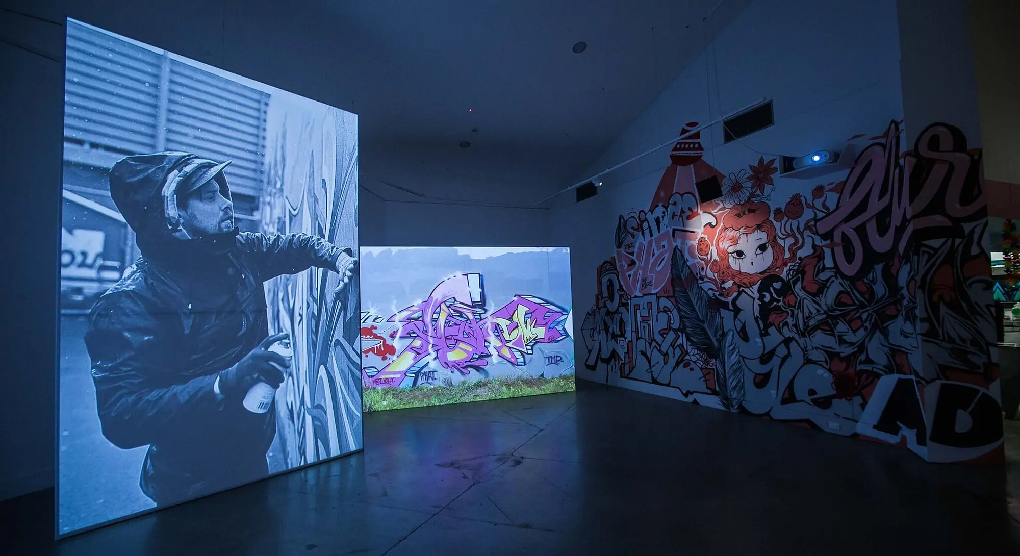 The Most Dedicated: An Aotearoa Graffiti Story installation view, 2021, The Dowse Art Museum. Image: Antonio Hernandez