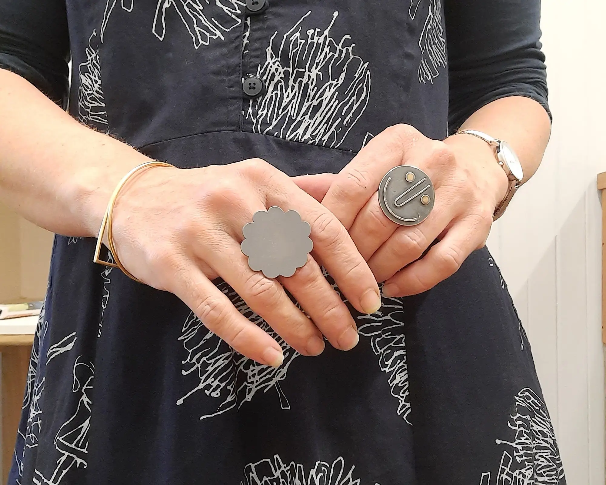 A week after making this ring, in a New Plymouth bathroom, I removed my rings to wash my hands properly and I realised that someone else had done the same and left a pile of delicate silver rings on the edge of the basin. E hoa, your rings are at the front desk at the Govett Brewster.