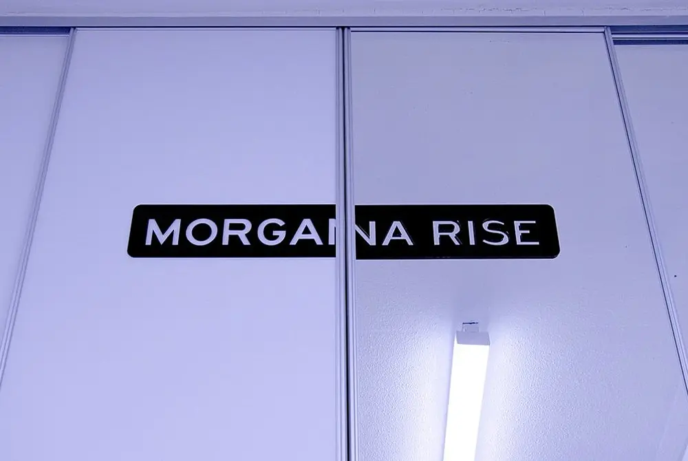 Biljana Popovic, Niki (installation view), Strandboard, tan vinyl, stainless steel sink, automotive paint, graphic vinyl, perspex. Sirens, solo show at Mirage, Auckland 2016.