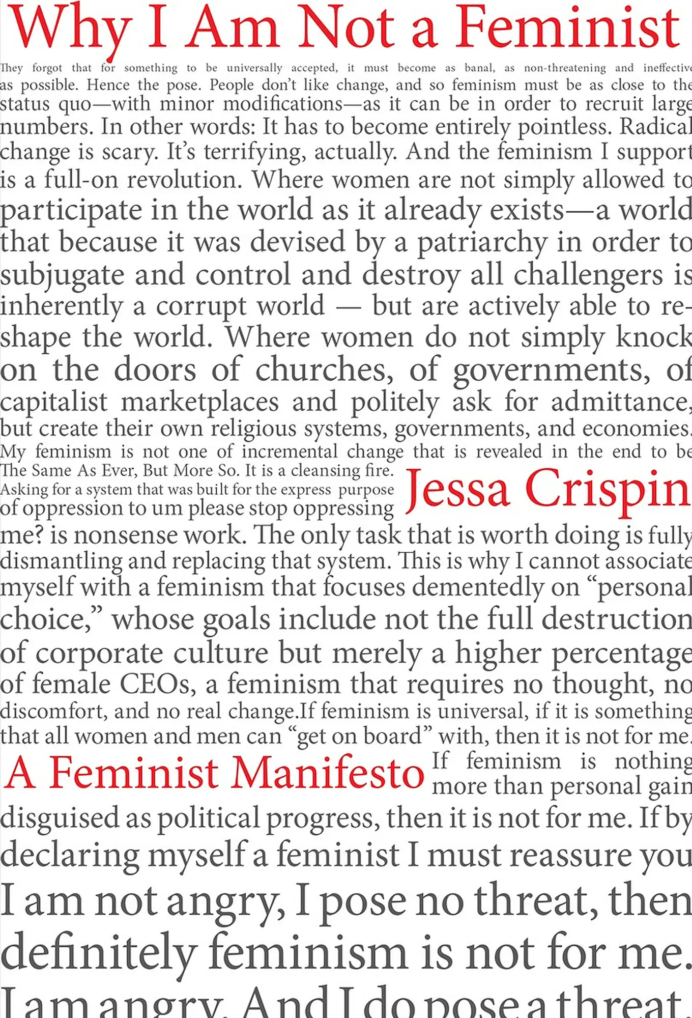 Why I Am Not a Feminist is Crispin’s third book (The Dead Ladies Project and The Creative Tarot came before). It has had mixed reviews: most have praised Crispin's 'sharp' mind and 'gutsy' approach, but reviewers have also noted that her ideas need expansion; she does not, in essence, provide answers.