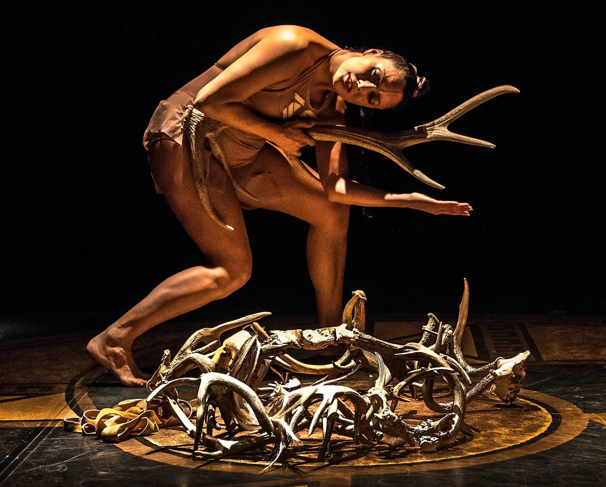My given name is Santee Smith and my Onkwehon:we name is Tekaronhiáhkhwa (Picking Up The Sky). I’m from the Kenien'kehá:ka (Mohawk) Nation, Turtle Clan from Six Nations of the Grand River territory. I am a mother and artist and thankful for all of creation and the strength of my ancestors. A life-long learner, curious explorer, passionate artist, I’m a lover of our pre-colonial teachings and knowledge. As often experienced by artists, work and life are inseparable both perpetually in a state of becoming. As an artist I hold performance in a sacred space, as all life is sacred. Dance and performance is how I move in the world.