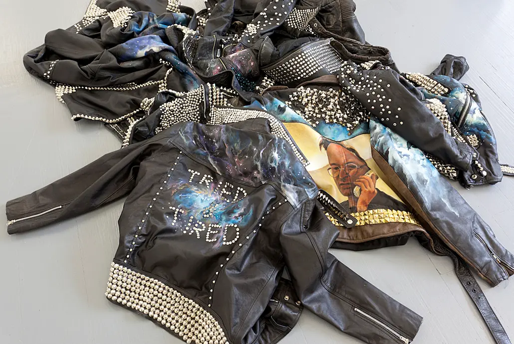 Originally from Seoul, Korea, Clara Chon has lived in Auckland, New Zealand, since she was ten. In 2011 she completed a Master of Fine Arts degree and began her fashion label, Blue Blank. You may have seen some of Clara’s Blue Blank items around: they include leather harnesses; harness-inspired leatherwork bags; and hand-painted, hand-studded, leather jackets. But before Clara began taking wearables to market, she was exhibiting them in art galleries as components of larger installations. Her interest in making things that are wearable, and in fact eminently sellable, didn’t always go over well at art school.