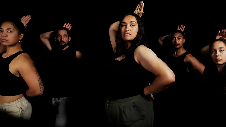 When we walked into the theatre at Te Auaha, the stage was set with tall artworks bearing the names of atua Māori. Tāwhirimātea, Mahuika and Hineahuone were just a few. For me, this was the beginning of all beginnings, our atua. The room went dark, and we experienced a representation of pōwhiri, in which branches were laid down. It brought to mind the whakataukī, Kua takoto te mānuka, the challenge has been set. Dressed in black, the performers embodied the movements of pīwaiwaka and sea creatures, and their singing pierced through the physical world all the way into te ao wairua.
