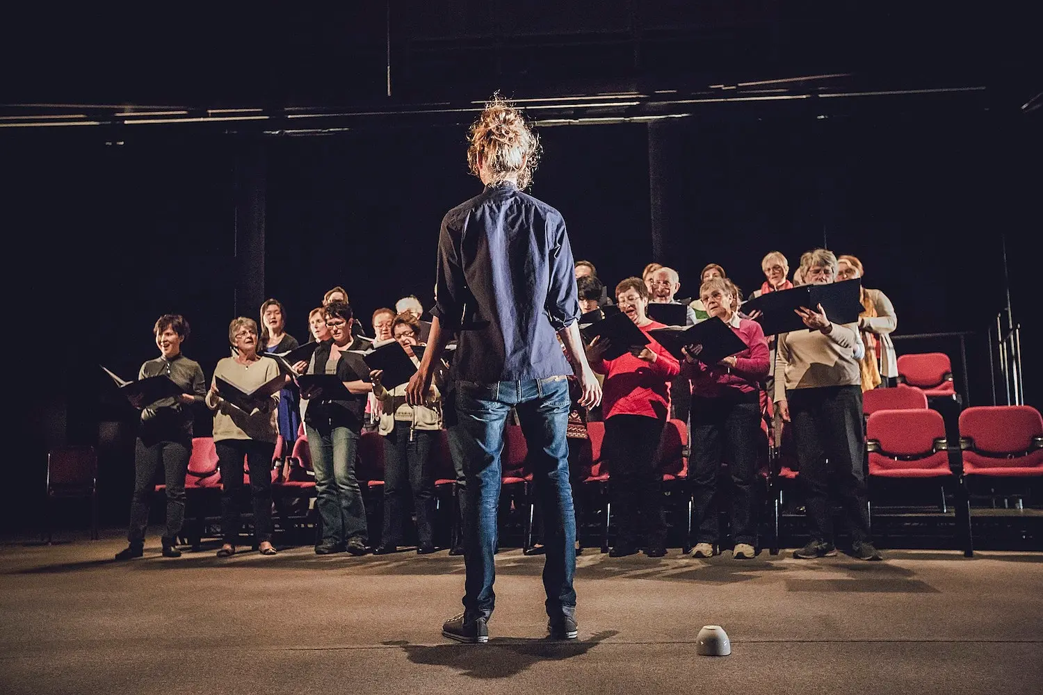 Thus as a kind of antidote, behind her stands the multitude. Greig is a playwright whose prolificacy is matched only by his constant formal experimentation. His deep understanding of the metaphoric alchemy particular to theatre is such that each new play is an opportunity to test aesthetic edges. He also leans towards that which Clare Wallace describes as “a neo-Brechtian form of storytelling, at once reflective and engaging”. In other words, he won’t let us forget we’re in a theatre, but that won’t get in the way of a story. Here, in a characteristic choice which offers a volatile liveness to the work, each night in The Events, behind those two actors, Greig places a community choir; a whole new collection of human faces who are at once part of the play and watching it for the first time. “It’s quite a leap of faith,” Roberts comments, “and it makes us all kind of vulnerable and exposed in a way that I find really exciting.”