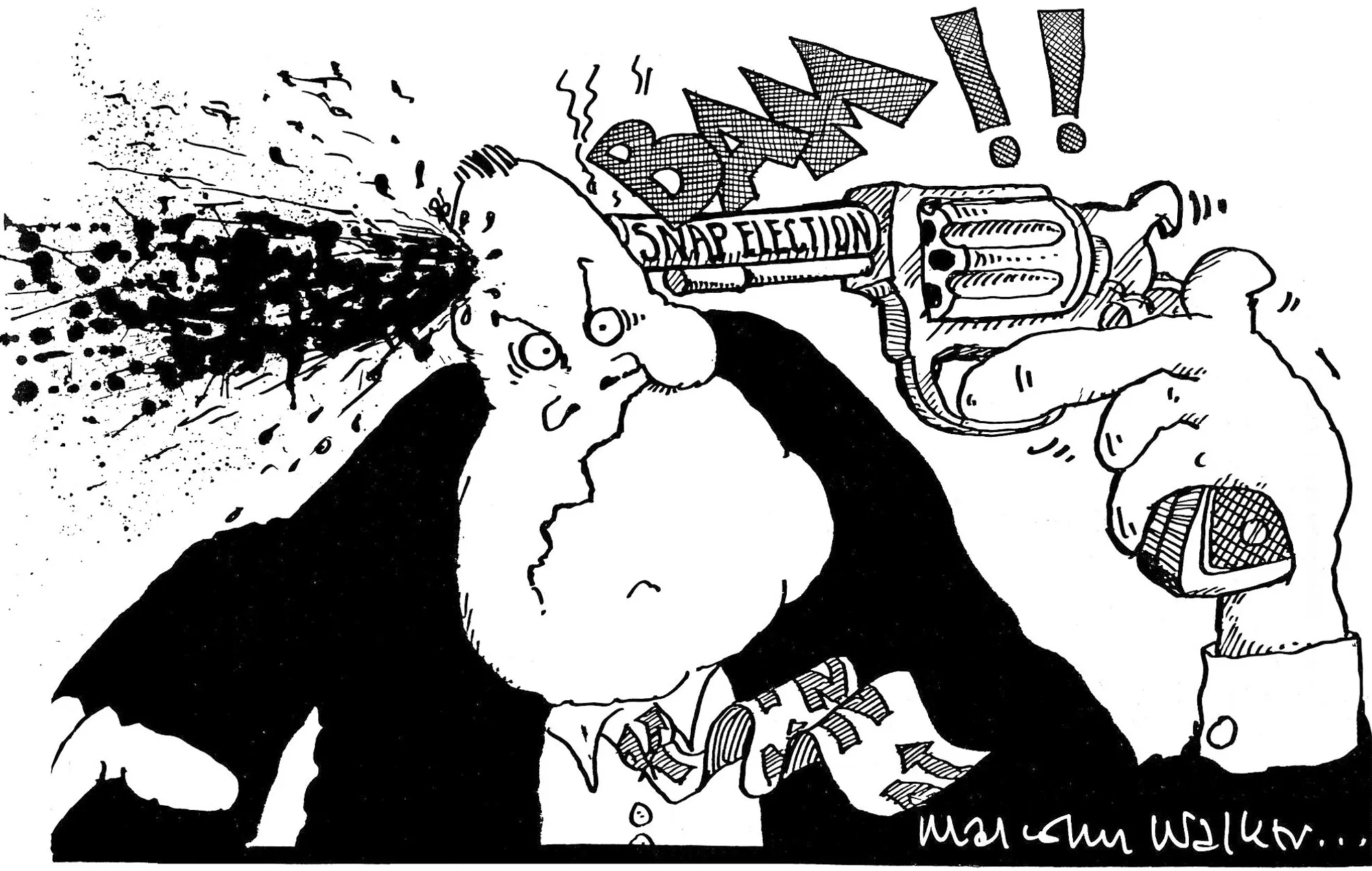 Generally all my editors have been pretty good and I’ve had no issues. I remember Barry Coleman (NBR owner) looking at one of my drawings showing Bolger as a jelly – and saying in an amused way, “You know we are a right wing paper don’t you?’ but that was about it. One of my earliest drawings, an Easter one, was of Colin Moyle being crucified at Golgotha with Muldoon washing his hands in the foreground. Allan Hitchens (Sunday News) on seeing it shouted ‘Holy Shit!’. He published it.
