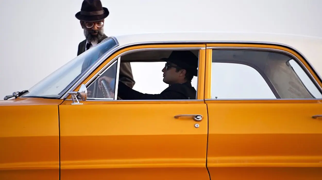 Haghighi and cinematographer Hooman Behmanesh (the pair’s first collaboration) make excellent use of contrasting bright and dark spaces and natural and contrived lighting choices. These often seem to play against the ostensible genre mode employed, like having fedora-bedecked Detective Babak Hafizi (Amir Jadidi) investigating an apparent suicide that he, to the ire of his superiors, deems suspicious. These would seem to be classic film noir markers, except Detective Hafizi is in the middle of an arid desert, in the baking sun, driving a bright orange 1960s Chevy Impala. In fact, dusty locales punctuated with bursts of highly-saturated colour are the order of the day, as if the film were some kind of mid-era Technicolor throwback. Cristof Rezaei’s scoring choices take proceedings a step further into the unexpected, breaking up periods of diegetic sound with the kind of low-intensity ‘90s industrial dance tracks you might expect to hear in The Matrix. Then before you can get a lock on the film’s tone, the soundtrack switches to a modern take on a more traditional Persian musical style, similar to that in Ana Lily Amirpour’s A Girl Walks Home Alone at Night.
