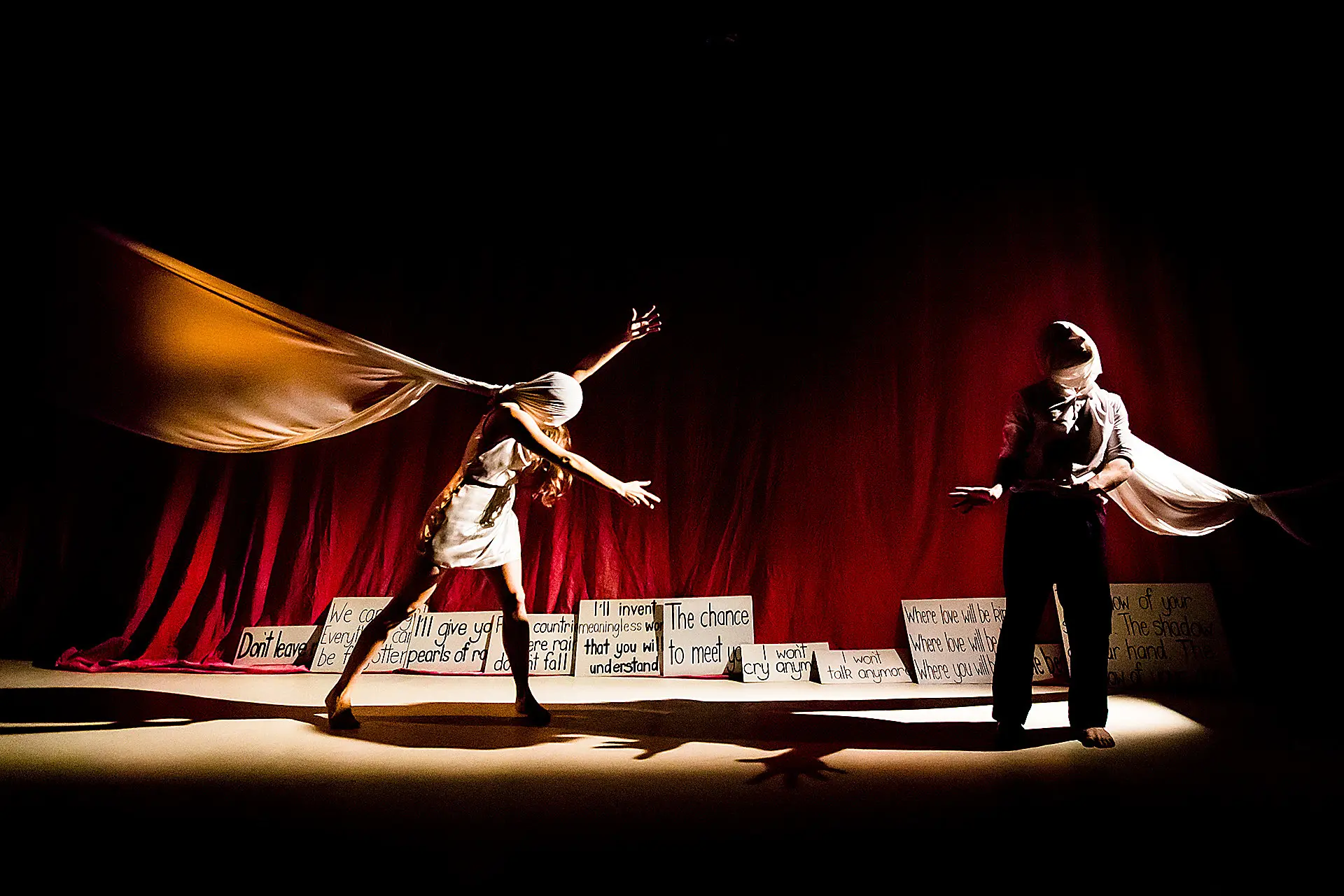 Lobsters opens with a near-nude man pupating inside a flesh-coloured lycra ball. He contorts and cracks his shoulders as he emerges from his cocoon, blossoming into a Jazz Age butterfly wearing flared pinstripe pants and a crisp white shirt. It’s a quiet, understated opening to Lobsters, Lucy Marinkovich’s grand homage to, and reclamation of, Surrealism. Against a harshly-lit Black Lodge space lined with a shiny red velvet curtain, ascendant dancer and choreographer Marinkovich takes a ton of familiar iconography – genre tropes from cinema and dance, gestures of love and despair, even a couple baking a lovely cake – and views it through a new, warped lens. The view we get is sad, funny and melancholic: a tale of love found and taken for granted, and of identity lost and taken back.