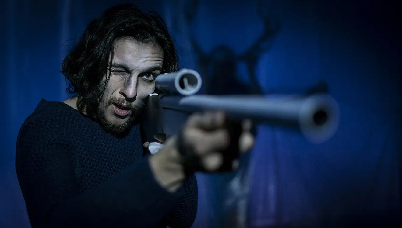 Like in Coleridge’s poem, things go south after the protagonist shoots an albatross – another stag do game – and the boat is becalmed at sea, in the Great Pacific Garbage Patch. There's something both deeply unsettling and deeply satisfying in the long period that follows the albatross' slaughter, as the four men and the production itself sink into an uneasy lassitude. The four men, initially full of shoving and competition, are drained as their situation worsens, first grasping at each other and swinging weary punches before finally collapsing to the ground. Eventually, the actors morph from one hopeless pile to the other, as changing lights signal the passing of time.
