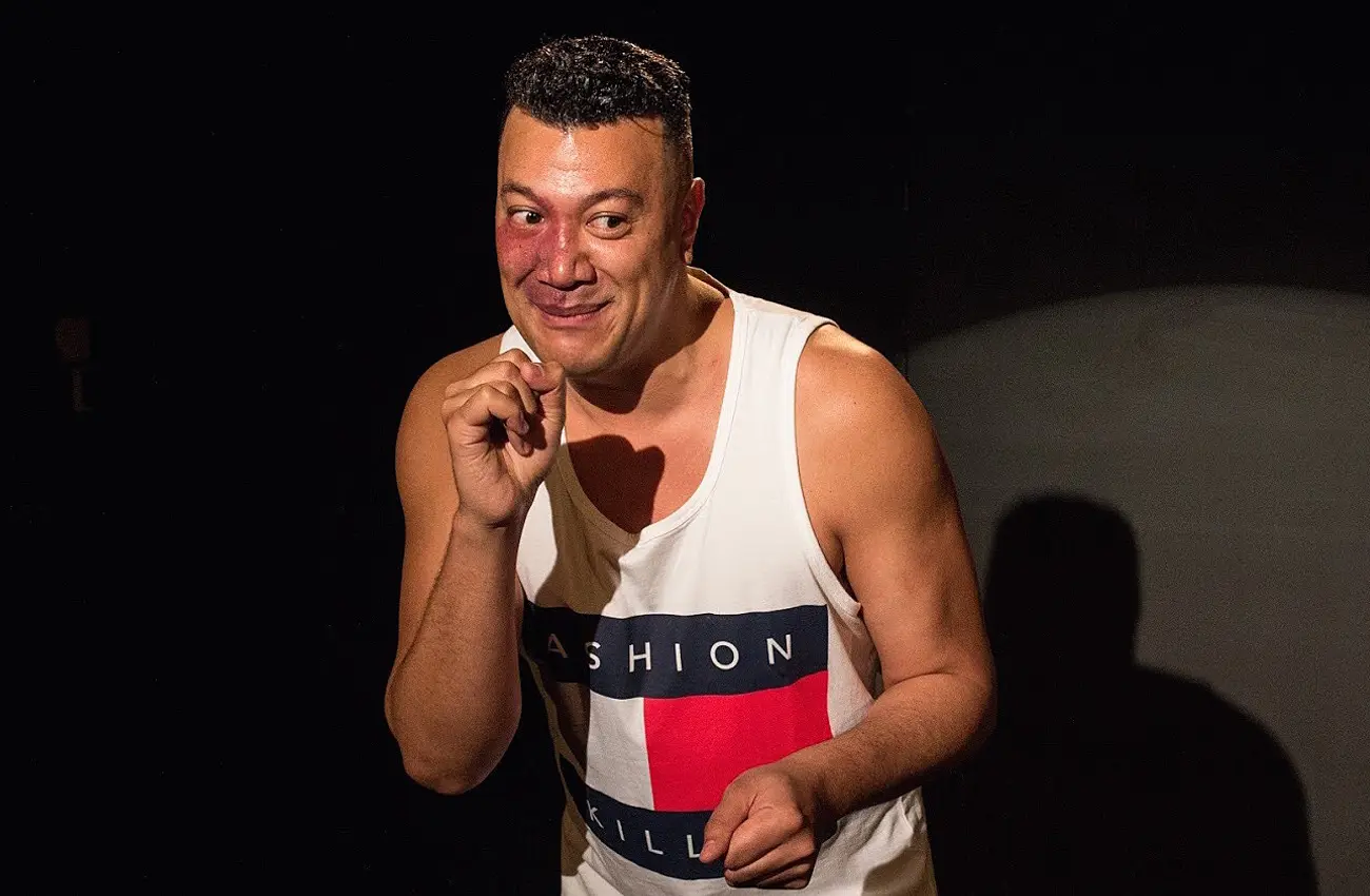 The loud cackling of some young bucks in the back row throughout made me think – where are the rest of these guys? Thirsty could really do with a Snapchat, Facebook, Instagram, high-school panui/notice plug out there! Hard. It’s just the kind of energetic, high-intensity hormone-fuelled kind of show that provokes and tickles the funny bone in teens, especially the Southsiders, and it’s a bonus that audience can relate to and revel in it even for a short while. A one-man schools tour could be in order. Why not?