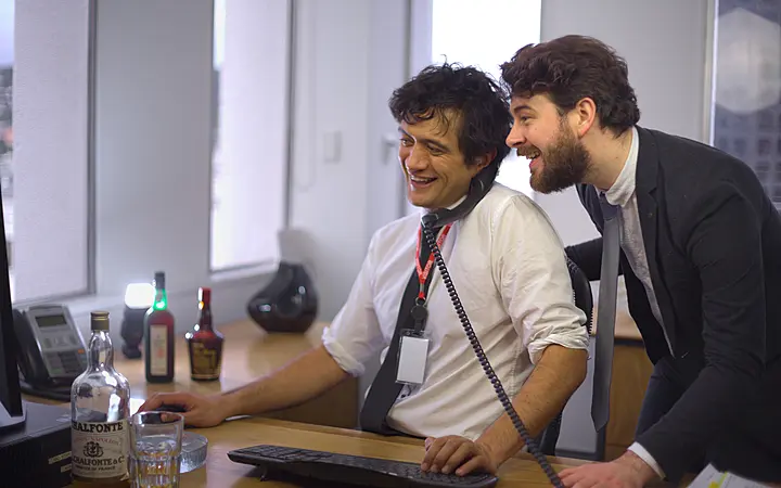 This whimsy and playfulness is also palpable in the performances. Despite playing a literal Dick, Duignan’s roguish charm floats to the surface. It’s in his confident gait, the over-exuberance in his voice and his willingness to push each joke just that little bit further, maybe with a weird tic or line delivery, that makes him a compulsively watchable cartoon villain. Edwards gets the more emotionally complex showcase. Every gesture is laced with an undercurrent of insecurity and in the moments where he drops his pretences, like his shell-shock at how Richard reacts to his promotion, he’s truly heart-breaking.