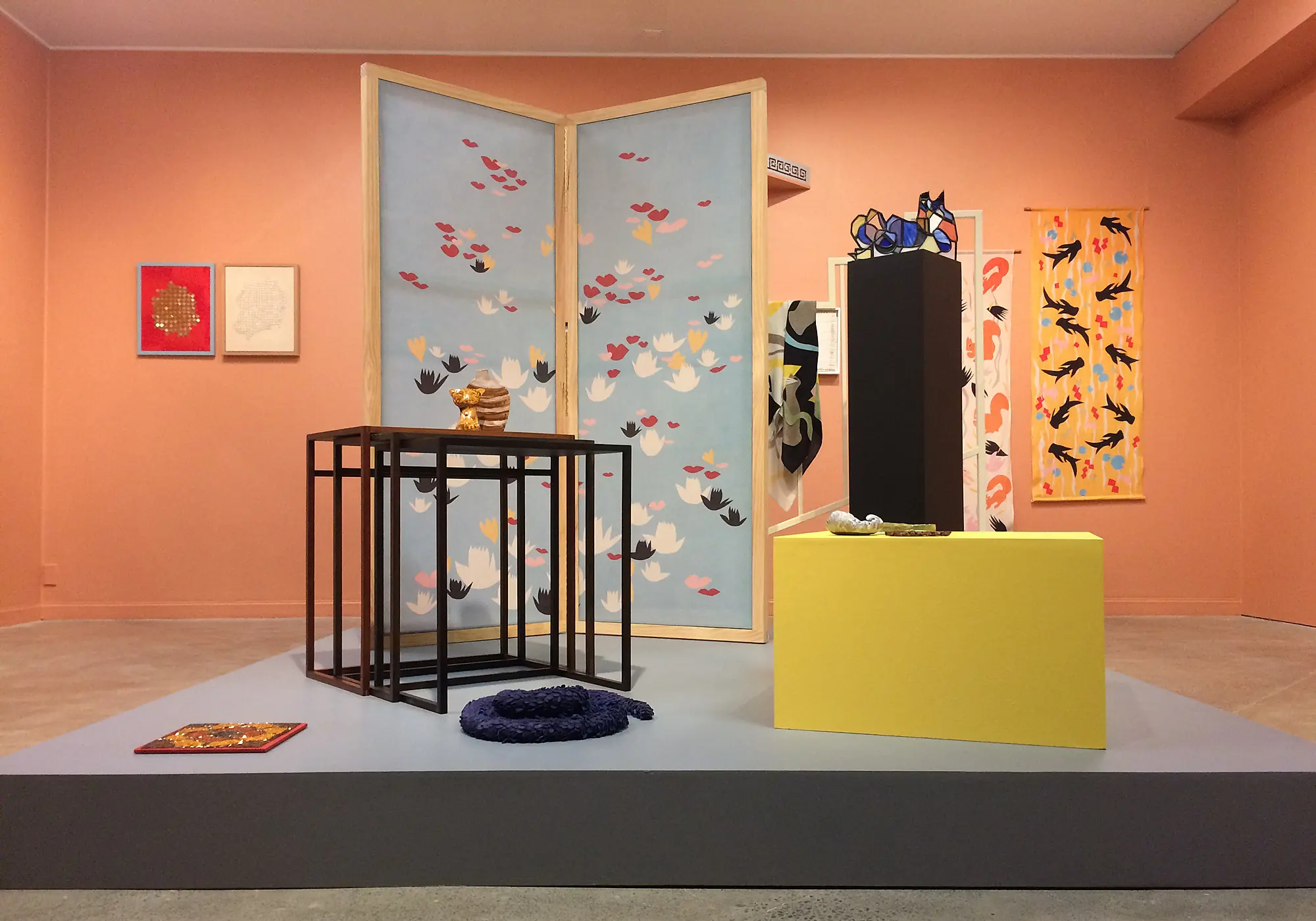 I'll set some rules, like with the Dunedin Public Art Gallery show – using the dimensions of a full sheet of plywood to inform the scale of the plinth. In that case, there had been a previous show in the same space with deliberately rough exhibition design, a Rugby World Cup all-male show Boys From the Black Stuff. Aaron Kreisler's exhibition design featured unfinished walls and a raw ply plinth – I wanted to re-claim the plywood plinth from that scenario and re-work it as a feminine object.