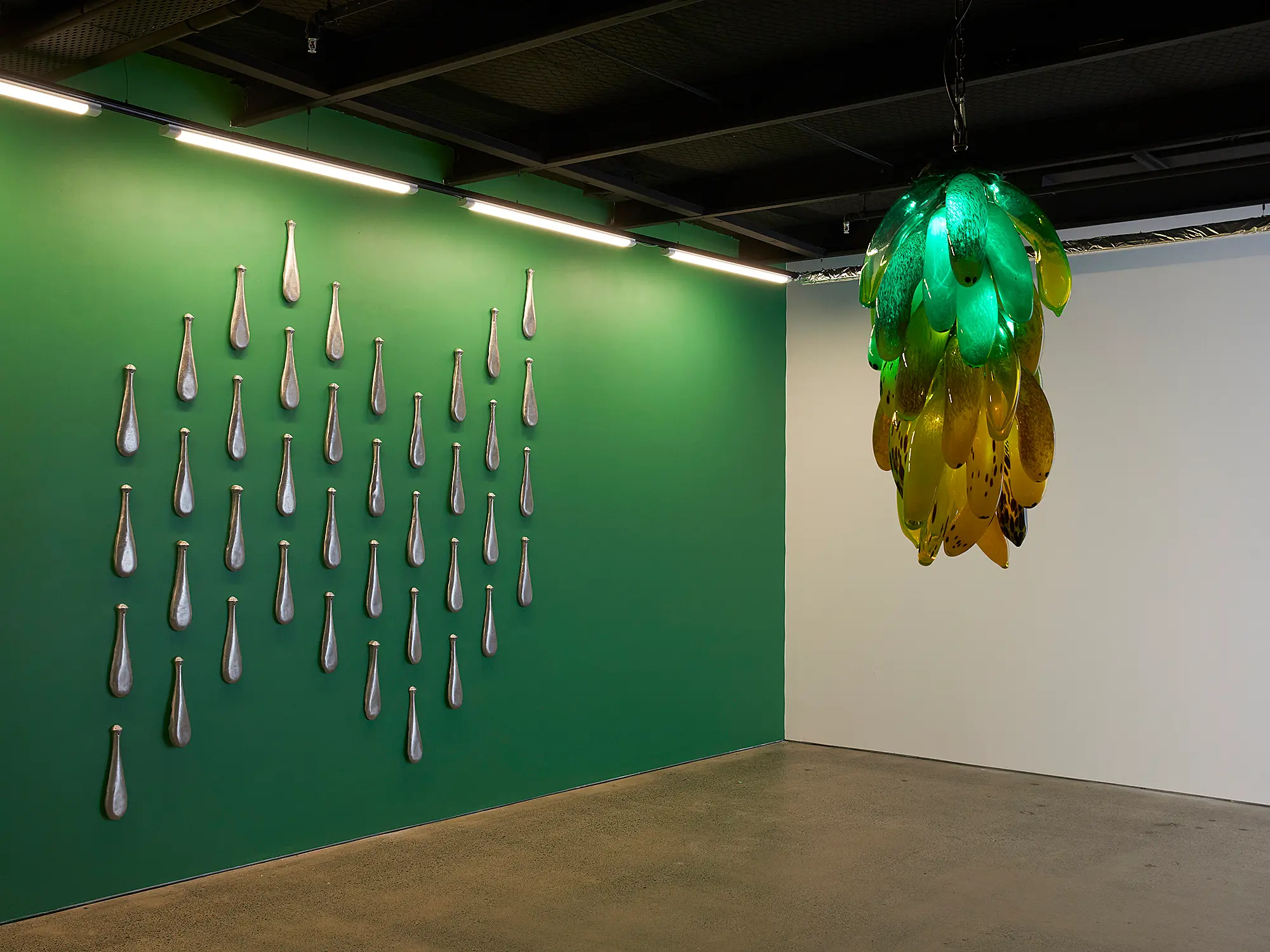 A hand-blown glass chandelier of bananas aptly named Plantain Chandalier (2019) hangs in the center of Thomas’ current exhibition, Pākehā Gifts. The exhibition “feels out a genealogy for Pākehā art-making, exploring the production and refashioning of Pākehā identity over the course of 250 years”. A familiar trope of Thomas’ work, these bananas were made in collaboration with a Los Angeles glass blower. I’m a sucker for bananas, whether it be Christina Pataialii’s painted ones, Janet Lilo’s banana light boxes on K’ Rd or a chandelier. (Bananas are also having a bit of a moment in the wider art world.) For people with connection to places like the Pacific, bananas can be symbols of home, of family and of land. Picking up on this, Thomas acknowledges the role bananas play in economies like Rarotonga, where he spends much of time. So what does it mean for a Pākehā artist to recreate and represent bananas as an art object, I guess that’s the question. – LL