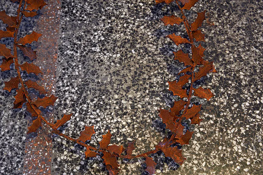 Watson and Laurie similarly seem to explore Euro-British influences on this nation. Their display includes a clock in the form of a snowflake, a holly-like wreath, a garden arch, a large screen evocative of the gate of an early lift or one fortifying the entrance to a department store. The pieces do not quite read as artefacts, plucked from the past. Instead, they feel like ghostly emblems of a dream of New Zealand as a white-dominated offshoot of a white-dominated empire. In 2018, in the ostensibly progressive context of a university gallery, the ensemble is a curious kind of provocation – lovely, almost memorial, and not a little pitiful. It has about it the smell of old institutions and illusions, questioning the ability of Pākehā to really see these things, questioning our willingness to let them go. – Francis McWhannell