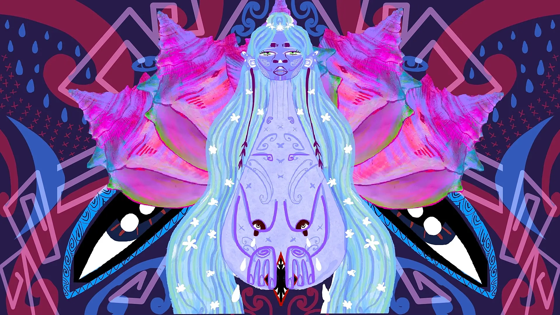 First I need to introduce you to the kaitiaki of this issue. Fittingly, Hine Pū Te Hue came forth in the artwork we commissioned from multidisciplinary artist and taonga pūoro practitioner Te Kahureremoa Taumata. This isn’t the first time Hine Pū Te Hue has joined us, she also featured strongly in the essay ‘Wāhine of Taonga Pūoro’, in this poem by Ruby Solly.
