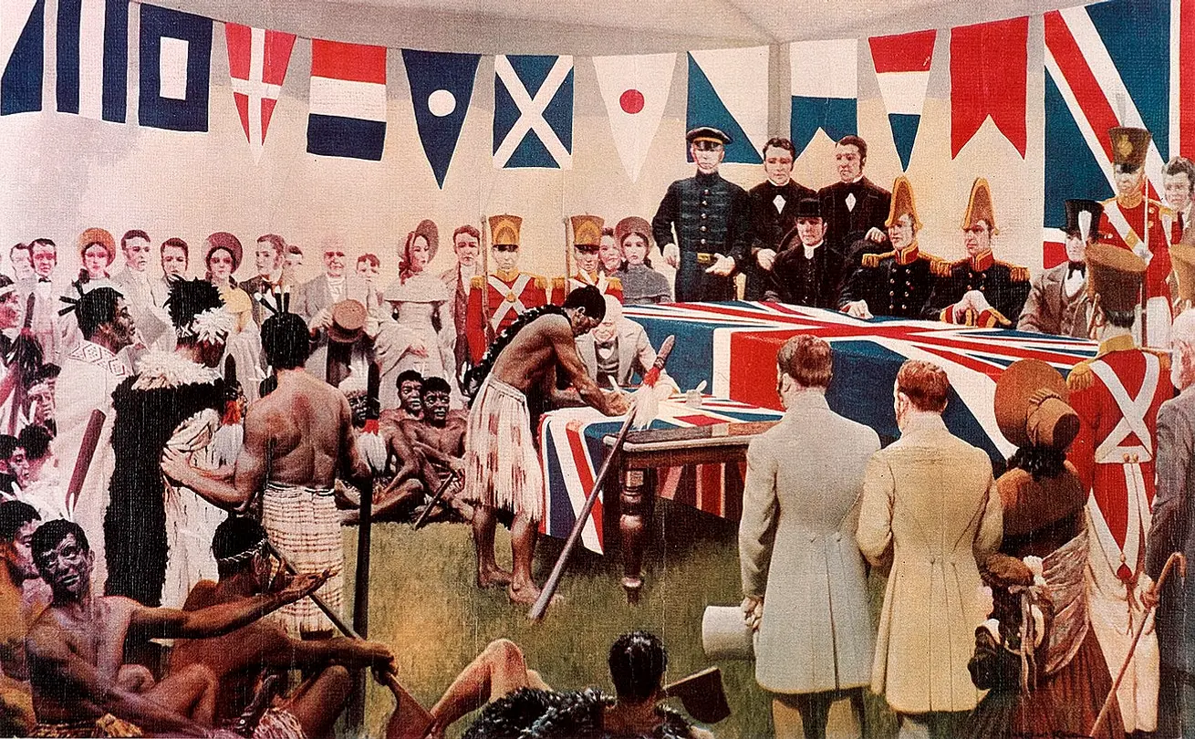 Title image: Marcus King's 1939 imagining of the scene at Waitangi on 6 Feb 1840. Hobson is shown in full uniform but actually wore civilian clothing. Source: Archives New Zealand