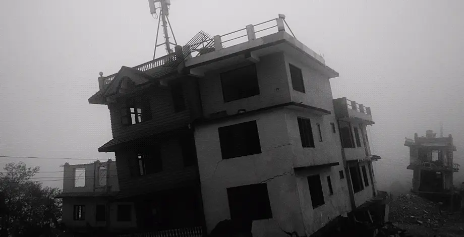 These were the larger towns. My arrival at Chisapani, a village near Shivapuri Nagarjun National Park in central Nepal, was more disorienting still, leaving me in a state of real life pathetic fallacy, my insides filled with that eerie emptiness of walking through dense mist. As I reached the plateau of a steep climb, piles of bricks, armchairs, and wood lined the roads. Low clouds blew through the air. They clung to the sides of the buildings as though trying to cushion them and keep them upright, or perhaps trying to comfort what was left of a town. Despite the mist’s best effort, several buildings looked as though they might topple at any moment. Standing abandoned and surrounded by bricks and furniture, it was as though it were still the day after the quake. “This was a hotel, and that one a restaurant. The villagers are living in a camp down the road now,” Sanjog explained. When people returned to use buildings, it was tentative. In New Zealand, you’re told “drop, cover, and hold” at school. In Nepal, you run out of the building. You run for your life. Perhaps the devastation made me more confident than was wise. What else could nature offer Nepal now?