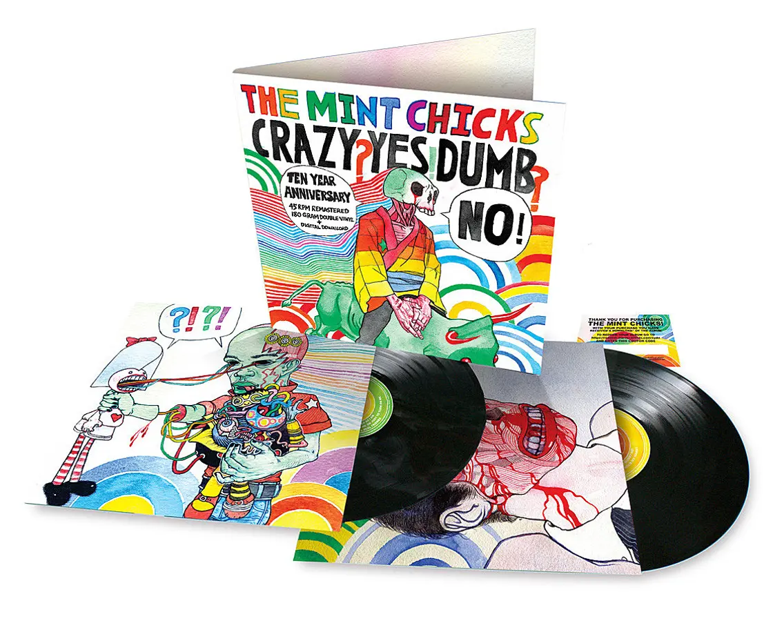 We have two copies of The Mint Chicks' ten year anniversary re-issue of Crazy? Yes! Dumb? No! to give away (45rpm Remastered, 180gm Double LP + digital download, gatefold sleeve with original art).
