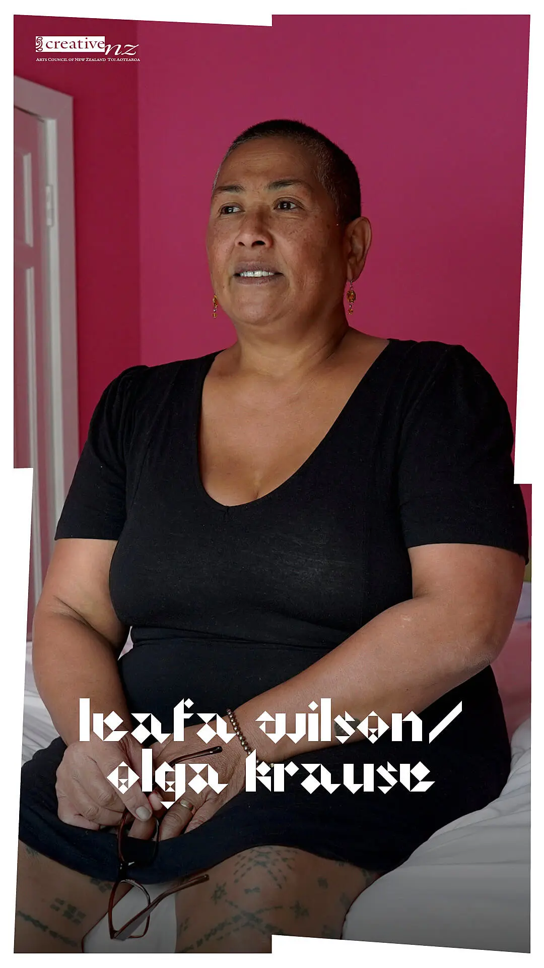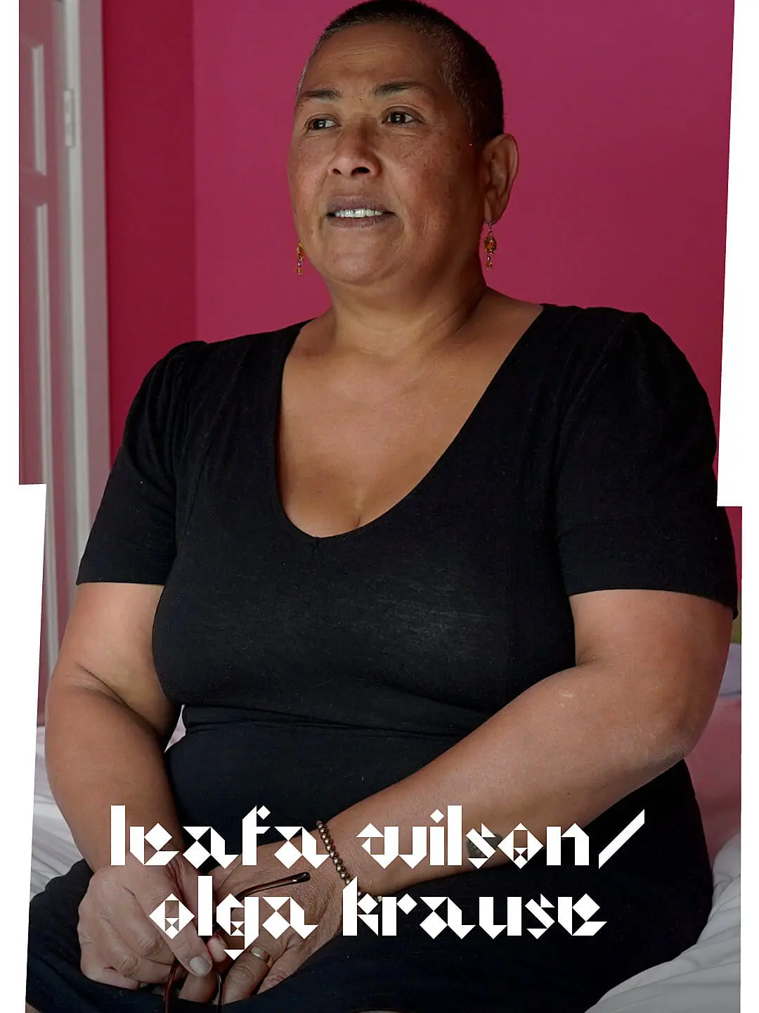 Leafa Wilson (Olga Krause) is a Waikato-based multi-media performance artist. She has been the curator of art at Waikato Museum Te Whare Taonga o Waikato since 2004 and an independent curator of her conceptual art space OLGA, which is currently on hiatus. Wilson is an independent art writer and has written numerous articles for White Fungus (Taiwan), Enjoy (Whaanganui a Tara), Sanderson Contemporary (Taamaki Makaurau) and Te Tuhi (Taamaki Makaurau).