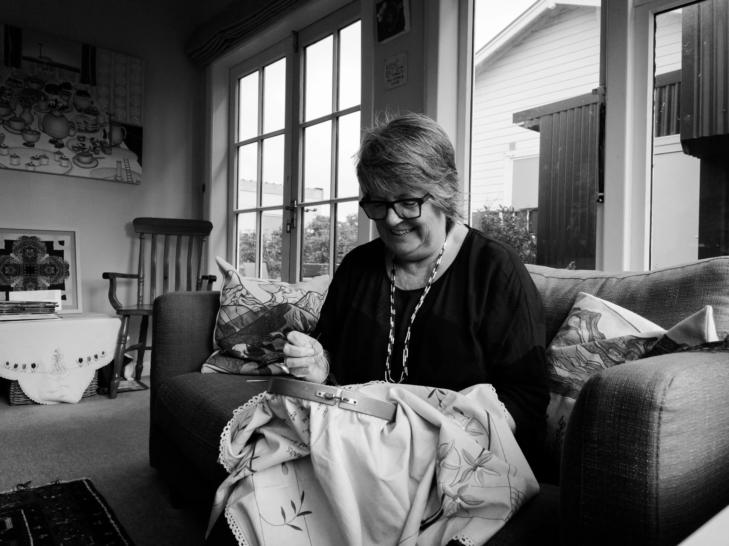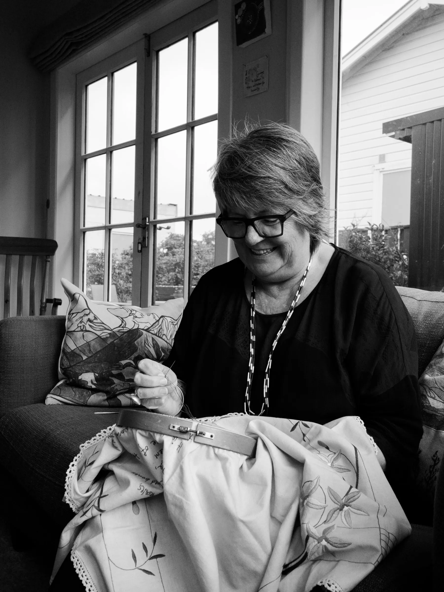Philippa Doyle (Pākehā - nō Netherlands, nō Northern Ireland) lives in Northland, Te Ahumairangi, Te Whanganui-a-Tara with her family. She is a Textile Artist, mother of three adult children, a volunteer for Good Bitches Bake, a soup maker for those having a tough time, a recovering Public Servant and an adoptee. Philippa uses textiles as a way of marking both the small and the big events of life - all significant in their own way.